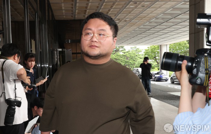 [서울=뉴스핌] 이호형 기자 = 구독자 1100만여 명을 보유한 유튜버 쯔양(본명 박정원)의 과거를 폭로하겠다고 협박한 혐의로 고발당한 유튜버 구제역(본명 이준희)이 15일 오후 서울 서초구 서울중앙지검에 자진 출석하고 있다. 2024.07.15 leemario@newspim.com
