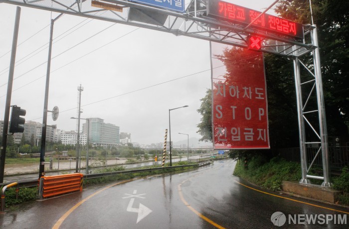 [서울=뉴스핌] 윤창빈 기자 = 서울 전역에 호우주의보가 내려진 18일 오전 서울 성동구 동부간선도로 진입로가 통제되고 있다. 2024.07.18 pangbin@newspim.com