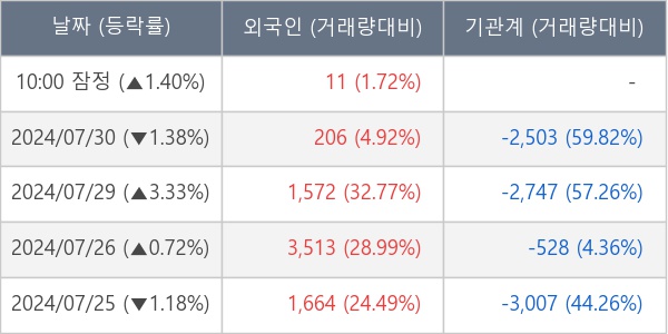 [표] 외국인ㆍ기관 순매매량 (단위 주)