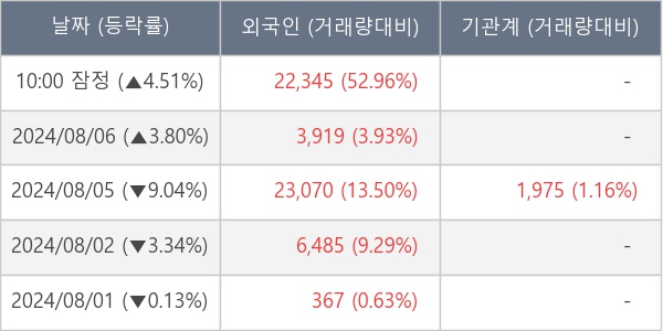 [표] 외국인ㆍ기관 순매매량 (단위 주)