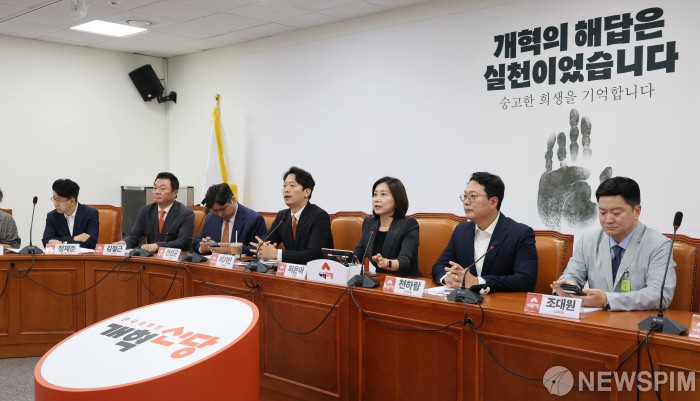 [서울=뉴스핌] 이형석 기자 = 허은아 개혁신당 대표가 12일 오전 서울 여의도 국회에서 열린 최고위원회의에서 모두발언을 하고 있다. 이날 허 대표는 모두발언을 통해 "개혁신당은 신임 독립기념관장의 임명에 분명한 반대의 뜻을 전한다"고 말했지만 "그와 별개로 광복절 정부 행사에는 참석할 것"이라고 말했다. 2024.08.12 leehs@newspim.com