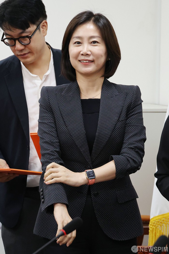 [서울=뉴스핌] 이형석 기자 = 허은아 개혁신당 대표가 12일 오전 서울 여의도 국회에서 열린 최고위원회의에 참석하고 있다. 이날 허 대표는 모두발언을 통해 "개혁신당은 신임 독립기념관장의 임명에 분명한 반대의 뜻을 전한다"고 말했지만 "그와 별개로 광복절 정부 행사에는 참석할 것"이라고 말했다. 2024.08.12 leehs@newspim.com