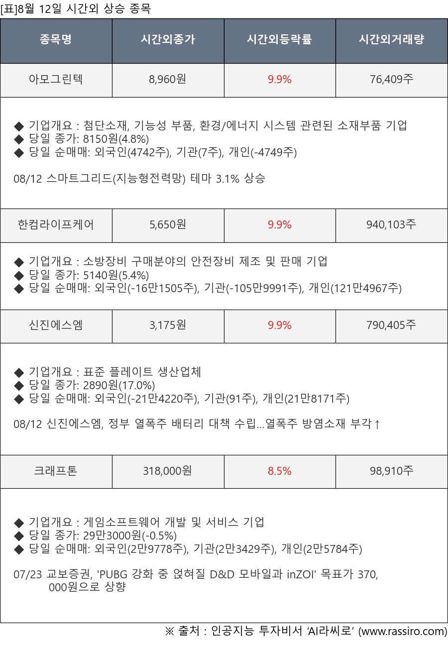 ※ 관련 종목: 아모그린텍, 한컴라이프케어, 신진에스엠, 크래프톤