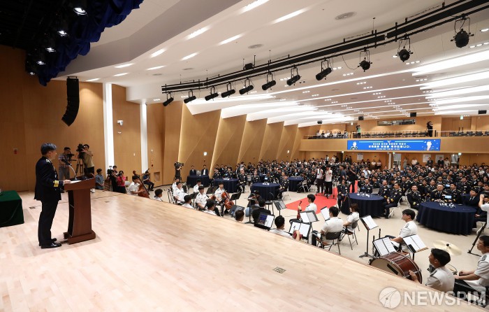 [서울=뉴스핌] 정일구 기자 = 조지호 신임 경찰청장이 12일 오후 서울 서대문구 경찰청에서 열린 제24대 경찰청장 취임식에서 취임사를 하고 있다. 2024.08.12 mironj19@newspim.com