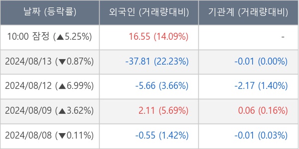 [표] 외국인ㆍ기관 순매매량 (단위 만주)
