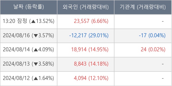 [표] 외국인ㆍ기관 순매매량 (단위 주)