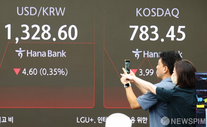 [서울=뉴스핌] 이호형 기자 = 21일 코스피가 전 거래일보다 11.64포인트(0.43%) 내린 2,684.99에 개장했다. 코스닥지수는 전 거래일보다 3.19포인트(0.41%) 하락한 784.25에 거래를 시작했다. 외환시장서 달러/원 환율은 전 거래일보다 4원70 내린 1,328.5원에 출발했다. 이날 오전 서울 중구 하나은행 딜링룸에서 딜러들이 업무를 보고 있다. 2024.08.21 leemario@newspim.com
