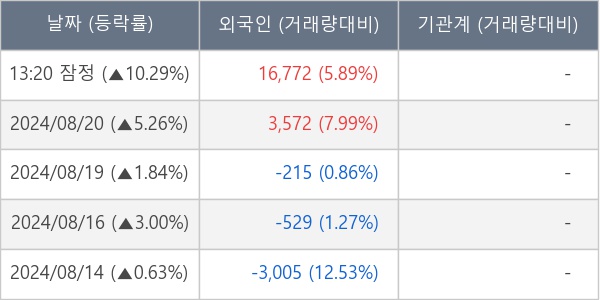 [표] 외국인ㆍ기관 순매매량 (단위 주)