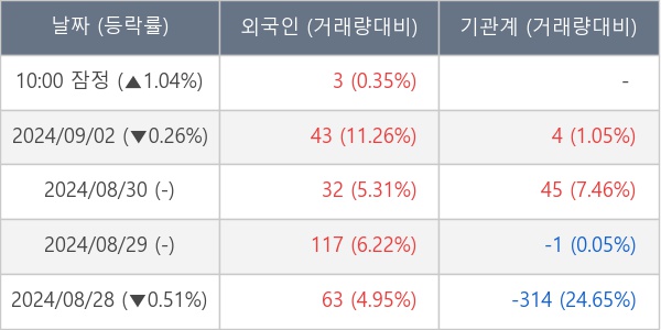 [표] 외국인ㆍ기관 순매매량 (단위 주)