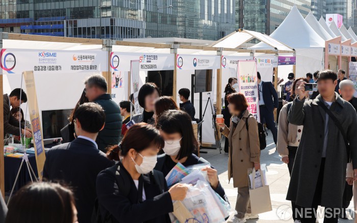 [서울=뉴스핌] 김학선 기자 = 24일 서울 광화문 광장 일대에서 열린 '2024년 재도전의 날 : 스위치-온! 스타트업' 행사에서 참가자들이 재도전관 부스를 둘러보고 있다. 중소벤처기업부와 창업진흥원은 실패와 위기를 극복하고 재도전에 성공한 기업인들을 격려하는 '2024 재도전의 날' 행사를 개최했다. 2024.10.24 yooksa@newspim.com