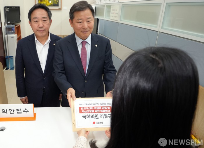 [서울=뉴스핌] 최지환 기자 = 이철규 산업통상자원중소벤처기업위원회 위원장이 11일 오후 서울 여의도 국회 의안과에 '반도체산업 경쟁력 강화 및 혁신성장을 위한 특별법안'을 제출하고 있다. 2024.11.11 choipix16@newspim.com