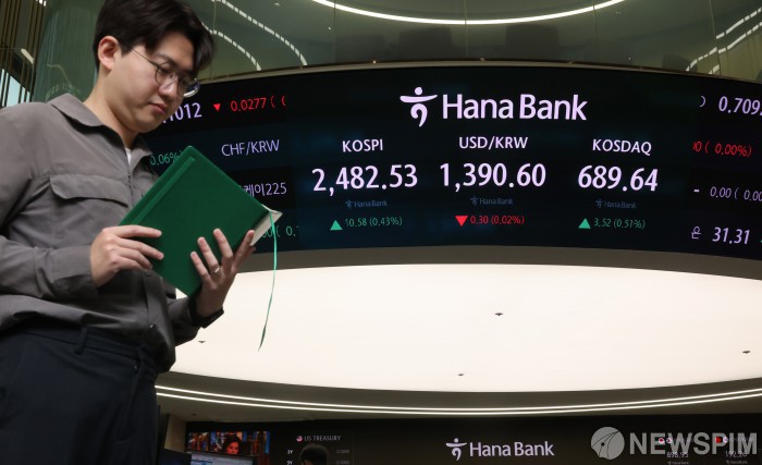 [서울=뉴스핌] 양윤모 기자 = 가상화폐 비트코인이 6일 만에 다시 최고가를 경신하며 9만 4천 달러 선에 진입을 시도하고 있는 가운데, 20일 오전 9시 코스피지수는 전일 종가보다 3.81포인트(0.15%) 상승한 2,475.76으로, 코스닥지수는 2.91포인트(0.42%) 상승한 686.12로 오전 거래를 시작했다. 서울 외환시장에서 달러/원 환율은 전 거래일보다 0.50원(0.04%) 상승한 1,391.40원에 오전 거래를 시작하며, 서울 중구 하나은행 딜링룸에서 직원들이 업무를 보고 있다. 2024.11.20 yym58@newspim.com