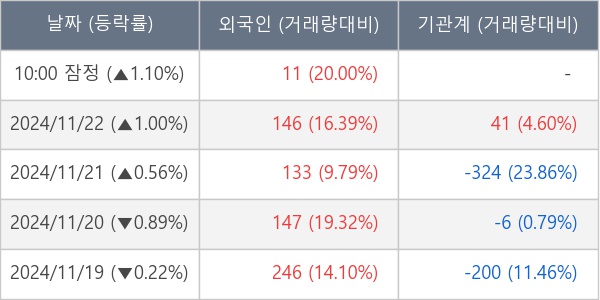 [표] 외국인ㆍ기관 순매매량 (단위 주)