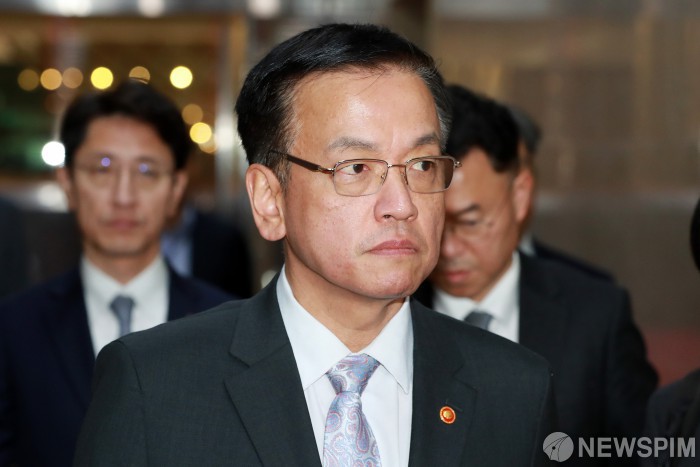 [서울=뉴스핌] 이형석 기자 = 최상목 부총리 겸 기획재정부 장관이 9일 오전 서울 여의도 국회에 우원식 국회의장과 면담을 위해 들어서고 있다. 2024.12.09 leehs@newspim.com