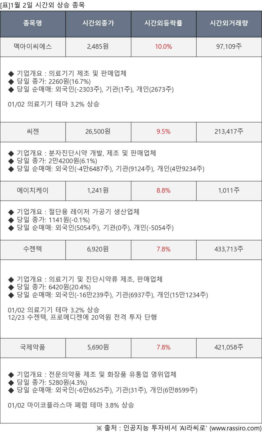 ※ 관련 종목: 멕아이씨에스, 씨젠, 에이치케이, 수젠텍, 국제약품
