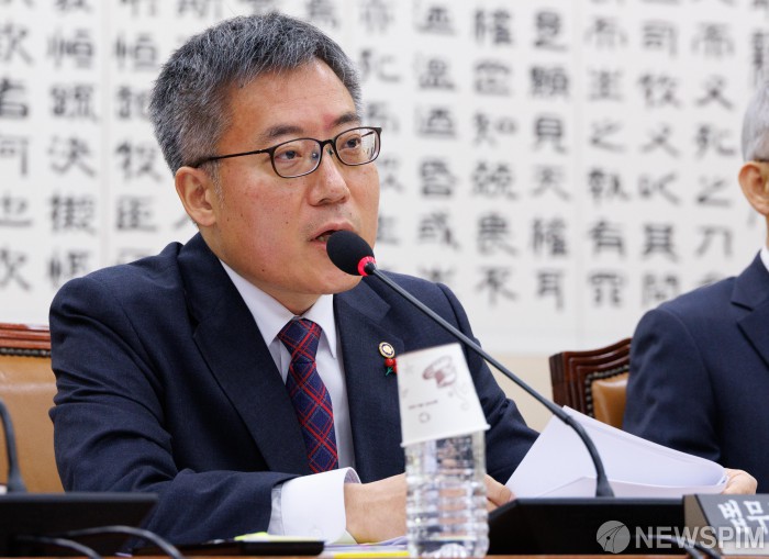 [서울=뉴스핌] 윤창빈 기자 = 김석우 법무부 장관 직무대행이 13일 오전 서울 여의도 국회에서 열린 법제사법위원회 전체회의에서 윤석열 정부의 내란-외환 행위의 진상규명을 위한 특별검사 임명 등에 관한 법률안에 대한 의원들의 질문에 답변하고 있다. 2025.01.13 pangbin@newspim.com