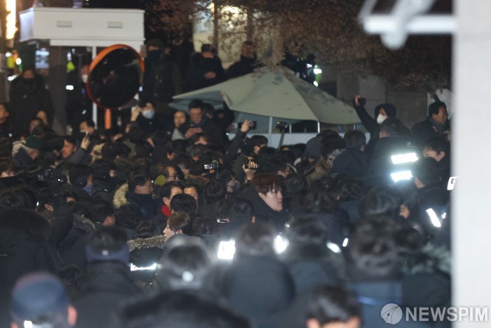 [서울=뉴스핌] 최지환 기자 = 15일 새벽 서울 용산구 대통령 관저 입구에서 공수처 및 경찰 수사관들이 진입을 시도하고 있다. 2025.01.15 choipix16@newspim.com