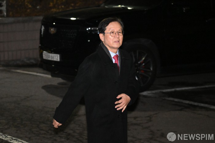 [서울=뉴스핌] 김학선 기자 = 내란 수괴와 직권남용 등의 혐의를 받는 윤석열 대통령의 구속 전 피의자 심문(영장실질심사)이 종료된 18일 오후 서울 마포구 서부지법에서 윤갑근 변호사가 법원을 나서고 있다. 2025.01.18 yooksa@newspim.com