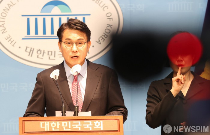 [서울=뉴스핌] 이호형 기자 = 윤상현 국민의 힘 의원이 31일 오후 서울 여의도 국회 소통관에서 열린 현안 기자회견서 마은혁 헌재 재판판 후보자 사퇴를 주장하고 있다. 2025.01.31 leemario@newspim.com
