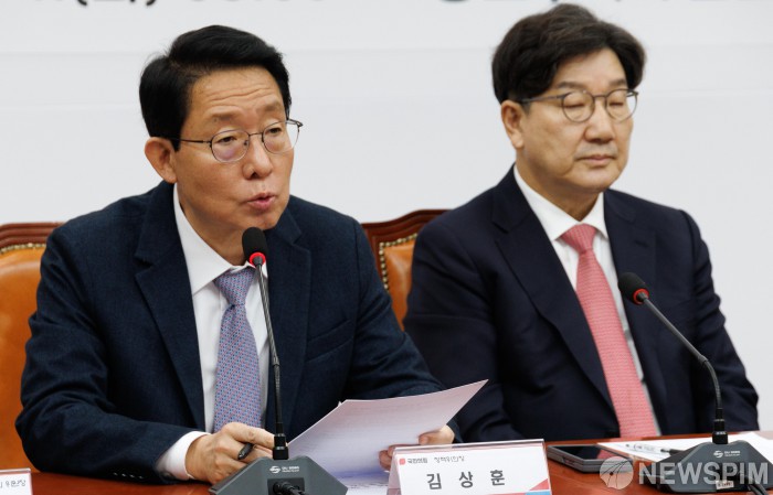 [서울=뉴스핌] 윤창빈 기자 = 김상훈 국민의힘 정책위의장이 4일 오전 서울 여의도 국회에서 열린 반도체특별법 주52시간제 특례 도입을 위한 당정협의회에서 모두발언을 하고 있다. 2025.02.04 pangbin@newspim.com