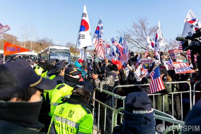[서울=뉴스핌] 국회사진취재단 = '윤석열 정부의 비상계엄 선포를 통한 내란혐의 진상규명 국정조사특별위원회(내란 국조특위)' 2차 현장조사 청문회가 진행된 5일 오후 경기 의왕시 서울구치소 인근에서 윤 대통령 지지자들이 집회를 이어가고 있다. 2025.02.05 photo@newspim.com