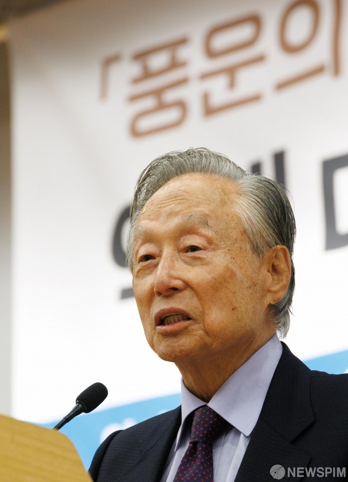 [서울=뉴스핌] 윤창빈 기자 = 권노갑 김대중재단 이사장이 7일 오후 서울 여의도 국회 도서관에서 열린 ‘풍운의 정치인 김상현을 읽다’ 출판기념회에서 축사를 하고 있다. 2025.02.07 pangbin@newspim.com
