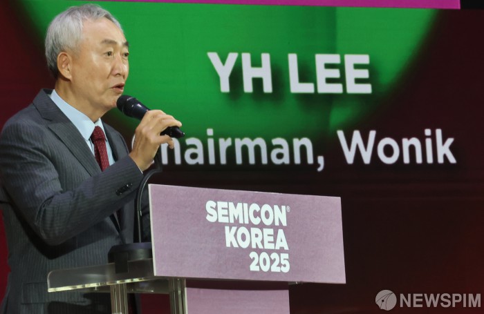 [서울=뉴스핌] 양윤모 기자 = 이용한 원익 회장이 19일 오전 서울 강남구 삼성동 코엑스에서 반도체 재료, 장비 및 관련 기술 전시, 반도체 기술 심포지엄, 마켓 트렌드 포럼이 실시되는 '세미콘 코리아 2025'개막식에서 축사를 하고 있다. 2025.02.19 yym58@newspim.com