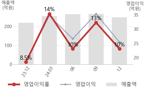 영업이익률을 자세히 살펴보면, 매출은 247억으로 전년동기 대비해서 14% 증가하였고, 영업이익도 25.4억으로 38% 증가하면서 전체적으로 실적이 좋아진 것을 알 수 있는데 매출 증가폭에 비해 영업이익 증가폭이 더 커서 영업이익률도 상승한 것을 알 수 있다.