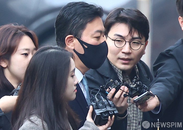 [서울=뉴스핌] 양윤모 기자 = 윤석열 대통령에 대한 체포영장 집행을 방해한 혐의를 받는 김성훈 대통령경호처 차장이 21일 오전 구속 전 피의자 심문(영장실질심사)을 받기위해 서울서부지법에 출석하며 취재진의 질문에 답하고 있다. [공동취재] 2025.03.21 yym58@newspim.com