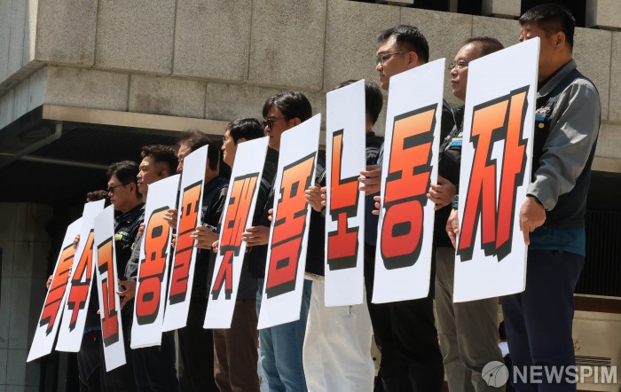 [서울=뉴스핌] 양윤모 기자 = 특수고용·플랫폼 노동자 노동기본권 보장을 위한 민주노총의 제21대 대통령선거 요구안 발표 기자회견이 30일 오전 서울 종로구 세종문화회관 계단 앞에서 양경수 위원장이 참석한 가운데 열렸다. 2025.04.30 yym58@newspim.com