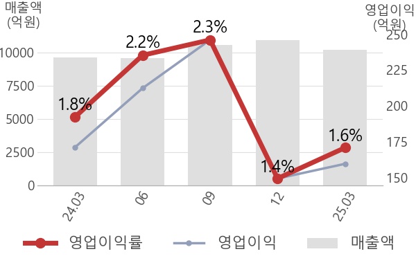 영업이익률을 자세히 살펴보면, 매출은 1조217억으로 전년동기 대비해서 6.2% 증가한 반면, 영업이익은 160억으로 6.8% 감소하였다. 매출은 증가하고 영업이익은 감소하여 영업이익률은 하락하였다.