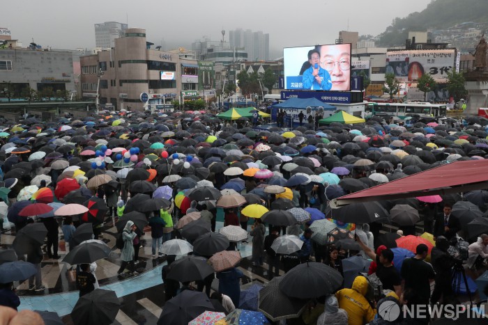 [여수=뉴스핌] 김학선 기자 = 더불어민주당 이재명 대통령 후보가 '이순신 호국 벨트' 유세차 15일 오후 전남 여수시 이순신 광장을 찾아 지지를 호소하고 있다. 2025.05.15 yooksa@newspim.com