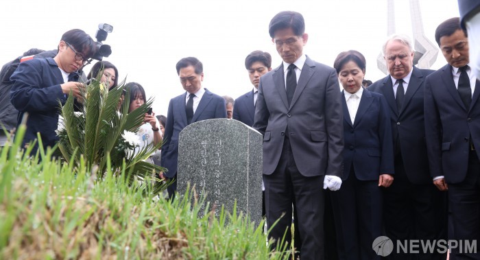 [광주=뉴스핌] 이길동 기자 =김문수 국민의힘 대선 후보가 17일 오전 광주광역시 북구 국립5·18민주묘지 찾아 참배하고 있다.. 2025.05.17. gdlee@newspim.com