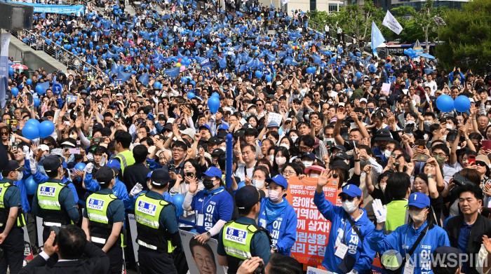 [광주=뉴스핌] 이형석 기자 = 광주시민들이 17일 광주 서구 김대중컨벤션센터 광장에 운집해 이재명 더불어민주당 후보의 유세를 보고 있다. 2025.05.17 leehs@newspim.com