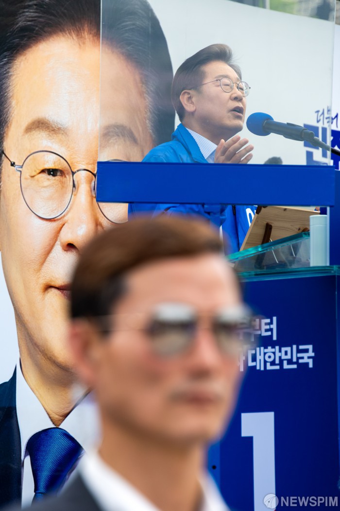 [일산=뉴스핌] 정일구 기자 = 이재명 더불어민주당 대선 후보가 20일 오후 경기도 고양시 일산문화공원에서 유세를 펼치고 있다. 2025.05.20 mironj19@newspim.com