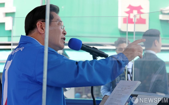 수원 시민들에게 지지 호소하는 이재명 민주당 대선후보