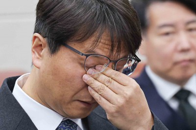 [김해=뉴스핌] 최지환 기자 = 권성동 국민의힘 원내대표가 28일 경남 김해시 김해수로왕릉 앞 광장에서 열린 김문수 국민의힘 대선 후보 유세에서 웃고 있다. 2025.05.28 choipix16@newspim.com