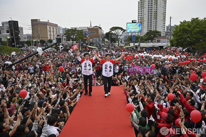 [영천=뉴스핌] 최지환 기자 = 김문수 국민의힘 대선 후보가 28일 오후 경북 영천시 영천역 앞 광장에서 열린 유세에서 지지를 호소하고 있다. 2025.05.28 choipix16@newspim.com