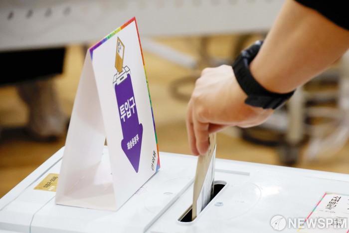 [서울=뉴스핌] 류기찬 인턴기자 = 제21대 대선 사전투표 첫째날인 29일 오전 서울 마포구 용강동주민센터에서 유권자들이 투표를 하고 있다. 2025.05.29 ryuchan0925@newspim.com