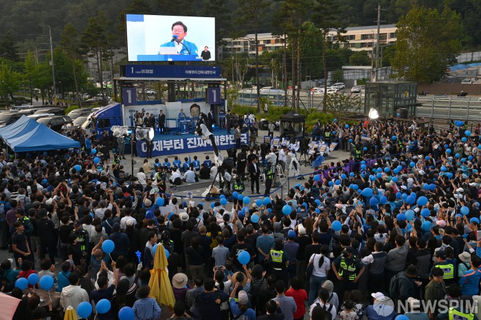 [서울=뉴스핌] 정일구 기자 = 이재명 더불어민주당 대선후보의 유세가 열린 29일 오후 서울 관악구 대학동 관악으뜸공원광장이 지지자들로 가득 차 있다. 2025.05.29 mironj19@newspim.com