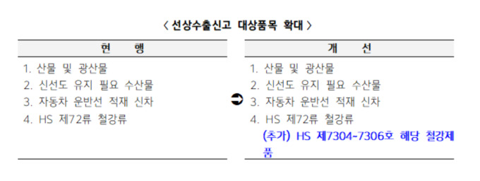 [세종=뉴스핌] 백승은 기자 = 정부가 '관세 폭탄' 주요 대상 품목인 철강 산업의 수출 부담을 줄이기 위해 선상수출신고 대상을 확대한다.