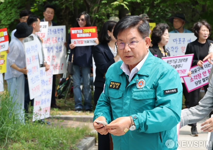 [서울=뉴스핌] 최지환 기자 = 박강수 마포구청장이 9일 오후 서울 마포구 마포자원회수시설 앞에서 열린 마포자원회수시설 공동이용협약 개정 철회 및 소각장 추가설치 반대 기자회견에 입장하고 있다. 2025.06.09 choipix16@newspim.com