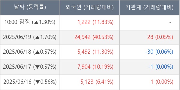 [표] 외국인ㆍ기관 순매매량 (단위 주)