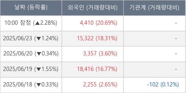 [표] 외국인ㆍ기관 순매매량 (단위 주)