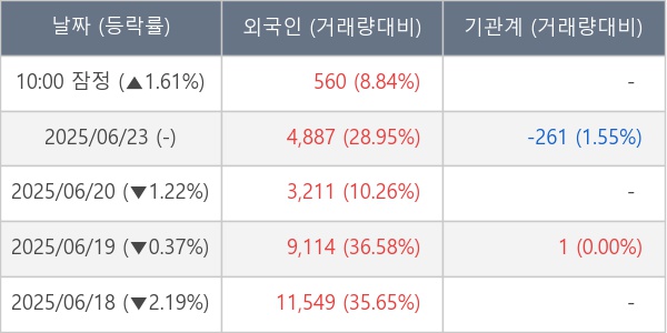 [표] 외국인ㆍ기관 순매매량 (단위 주)