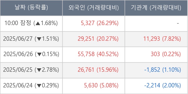 [표] 외국인ㆍ기관 순매매량 (단위 주)