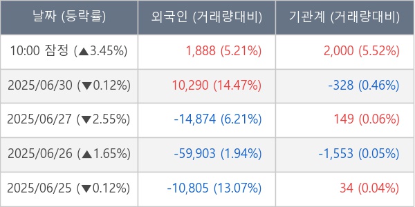 ※ 사모펀드 등 일부 기관의 순매매량은 표시되지 않음