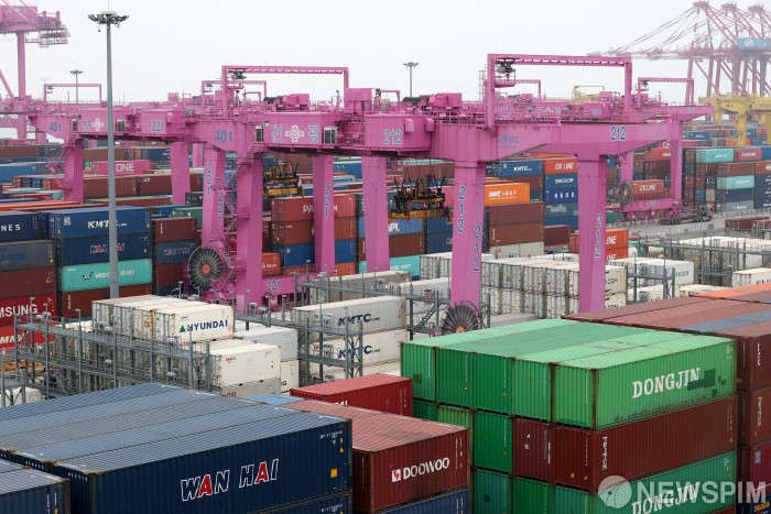 [인천=뉴스핌] 정일구 기자 = 미국이 상호관세 유예 기간 종료 시점인 8일까지 협상을 마무리 짓지 못한 국가들에게 '다음 달 1일 발효'를 조건으로 한 관세율을 곧 통보할 것이라고 예고했다. 도널드 트럼프 대통령은 6일(현지시간) 뉴저지주 일정을 마치고 워싱턴으로 돌아가기 전 취재진과 만나 관세 인상을 알리는 서한을 12개국 또는 15개국을 대상으로 7일(현지시간)부터 발송할 것이라고 밝혔다. 사진은 7일 인천 연수구 인천신항 컨테이너 터미널 모습. 2025.07.07 mironj19@newspim.com