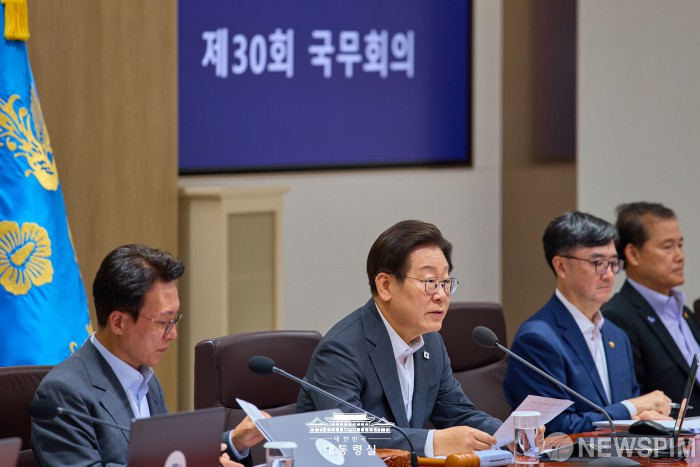 [서울=뉴스핌] 이재명 대통령이 8일 서울 용산 대통령실에서 열린 제30회 국무회의에서 모두발언을 하고 있다. [사진=대통령실] 2025.07.08 photo@newspim.com