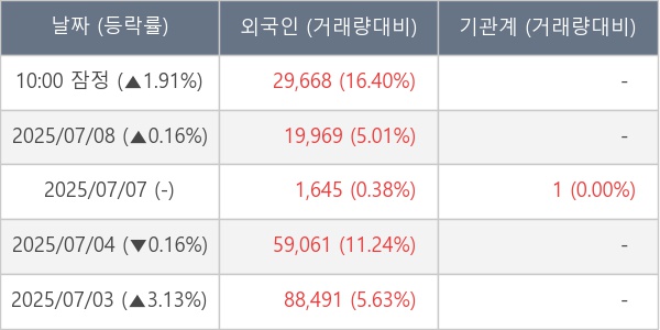 [표] 외국인ㆍ기관 순매매량 (단위 주)